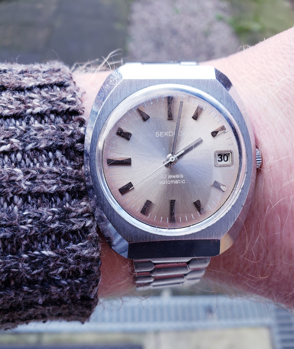 W środku SEIKO NH-15. Najgorszy mechanizm jaki miałem w nowym zegarku. Dramatycznie niedokładny. Ale dramatycznie. Wyregulować - nie idzie, odchyłki pozycyjne liczone w minutach ;)