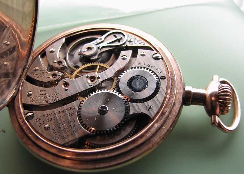 Kolejny South Bend, rowniez trudny do znalezienia grade 415, 12s, 1910, adjusted to temp., 17j, wyprodukowana tylko 4 tysiace, poniewaz jest to model przejsciowy, ten akurat pochodzi z pierwszego cyklu produkcyjnego i jest to model A. Zegarek jest z serii Chesterfield jak mozna zobaczyc na kopercie.