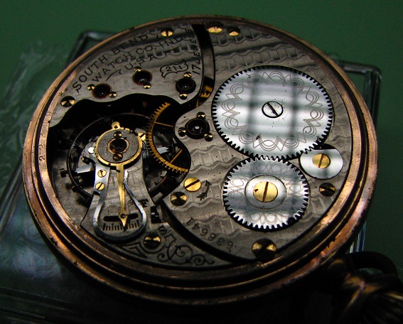 Po dlugiej przerwie male co nie co ode mnie: South Bend 211 Private Label. W sumie nic specjalnego mozna by powiedziec... ale, machanizm jest dosc niespotykany - wszystkie srubki sa koloru zlotego (ta jedna pewnie nieoryginalna), wskazowki nie niebieskie tylko jak w wyzszch gradach purpurowe. O kopercie nie warto wspominac... ruina. Zeby bylo smiesznie to znowu mialem fuksa - szczegoly mechanizmu nie byly widoczne na zdjeciach z aukcji, wiec poszedl w dobrej cenie :).