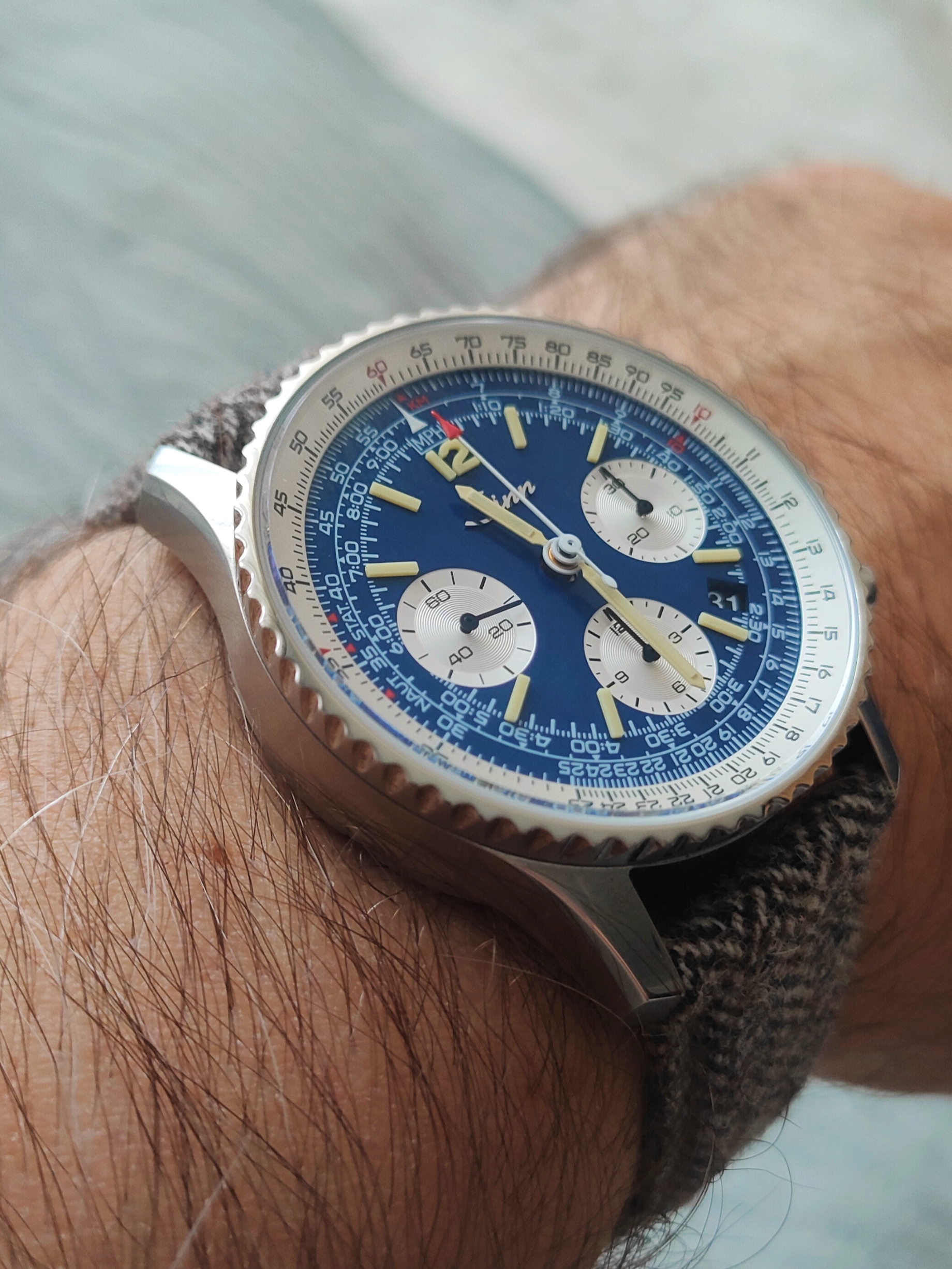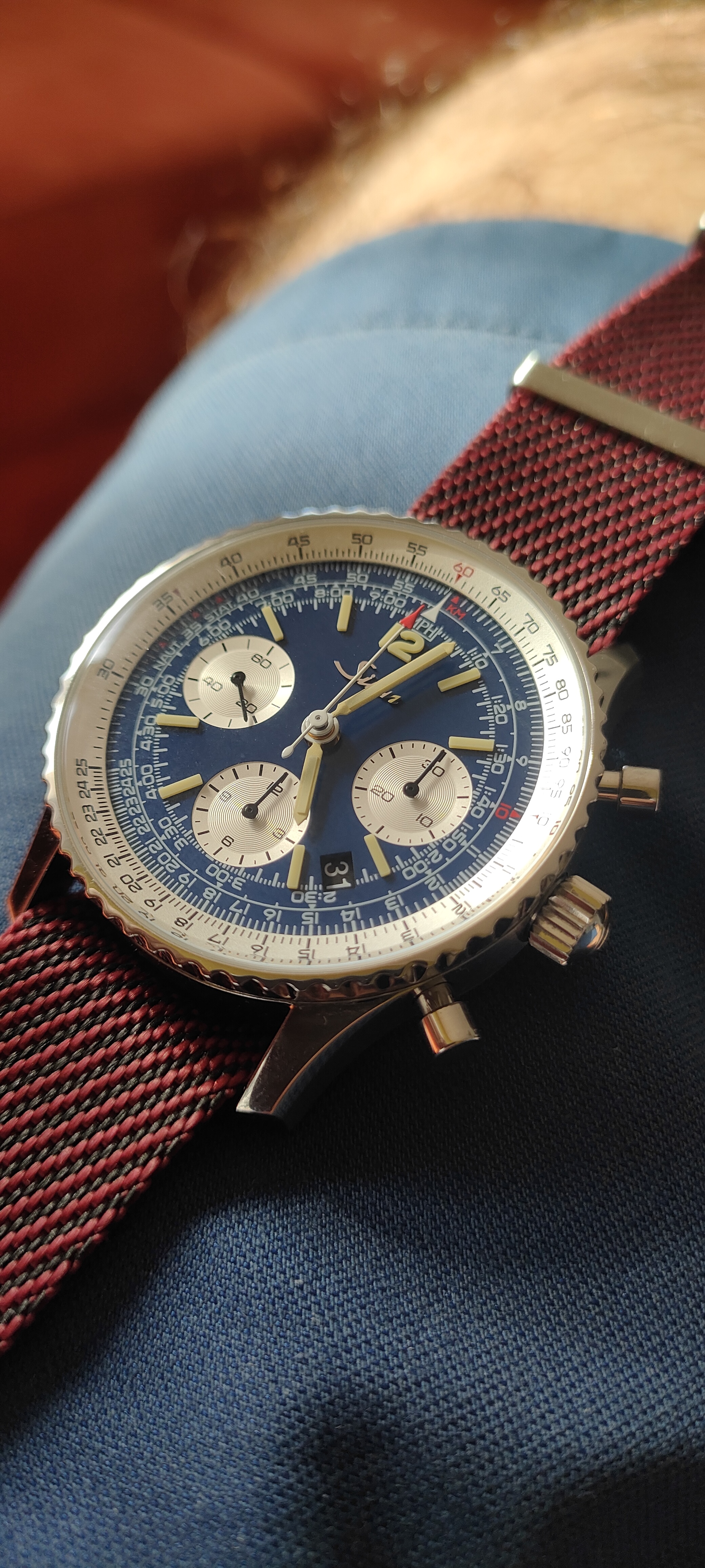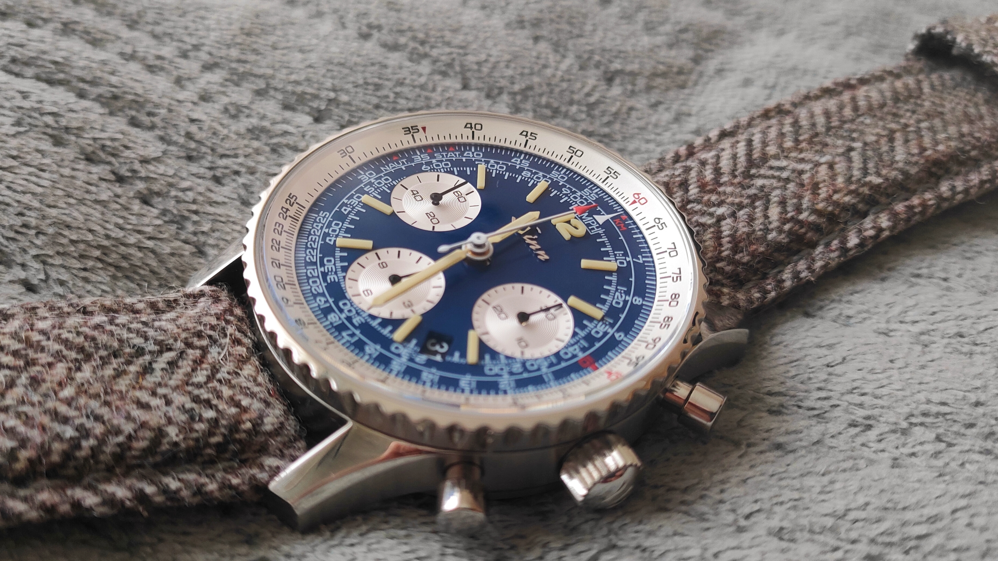 Ale wrażenia bardzo pozytywne. Rozmiar dla mnie idealny. Może gdyby urwać milimetr z grubości, to byłoby genialnie. Raczej nie jest to zegarek do codziennego tyrania, ale jako opcja w kolekcji na coś konkretnego na pewno warty rozważenia. Tak mi się spodobały chrono na tym mechanizmie, że następny Sinn to będzie 903 lub 144.