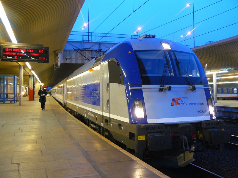 Ależ to nasz pociąg, bodajże BWE, z jedną z 10 lokomotyw Siemensa należących do Intercity. Żaden pic. Dworcami administruje inna spółka, nie mamy na nie wpływu.