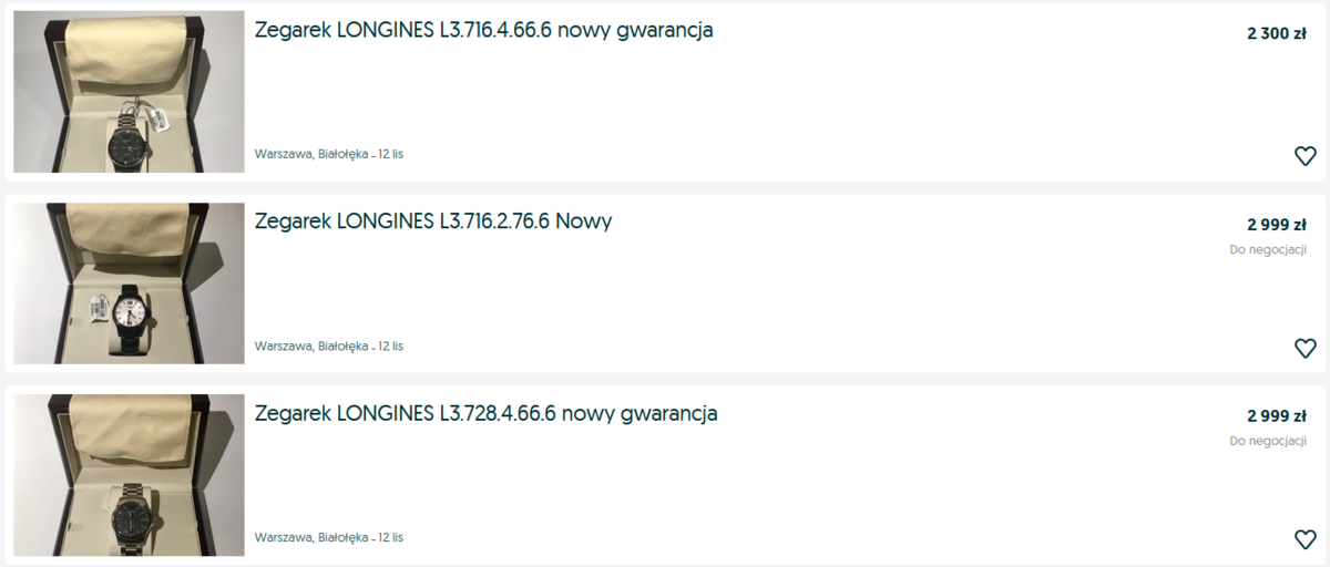 Zadziwił mnie sprzedawca OLX, który miał fajny zegarek, który mnie zainteresował, w normalnej rynkowej cenie, konkretnie opisany, wszedłem w "Wszystkie przedmioty sprzedającego" a tam drugi w podobnym tonie a reszta to Rolex za 700, TH za 550, GP za 600 i kilka innych perełek. 🤔