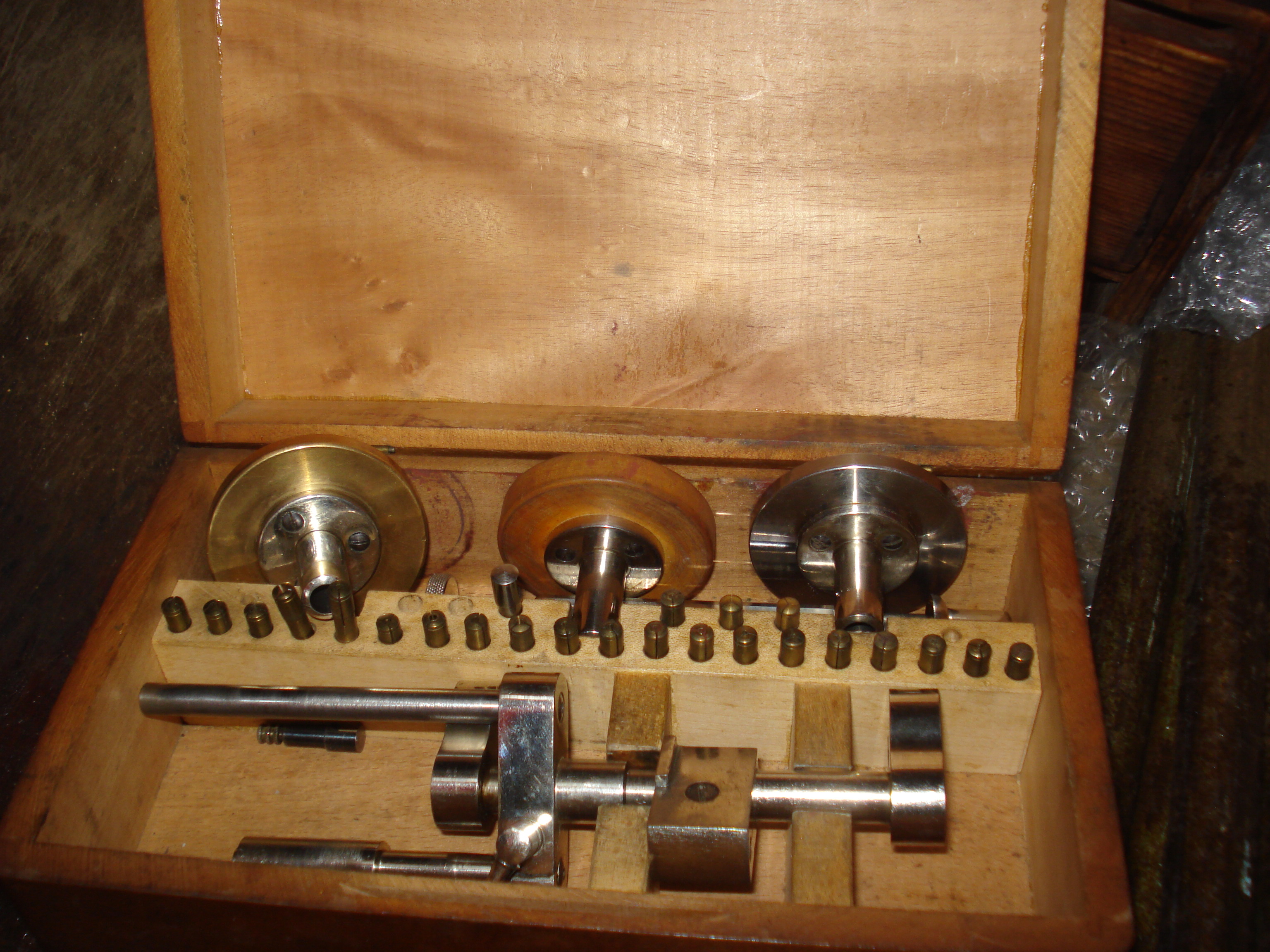 To ja moze wrzuce foty mojej przedwojennej wycinarki do tarcz i szkiel mineralnych,matryce z zaciskarka i laweczke do cylidrow.Jak nie zapomne to wrzuce jutro.Na zdjeciach przedstawionych przez Piotra w 1 poscie 4-ka to wycinarka,13-ka to osemka, 8-ka to roler. Zdjecia Janka z bazaru: