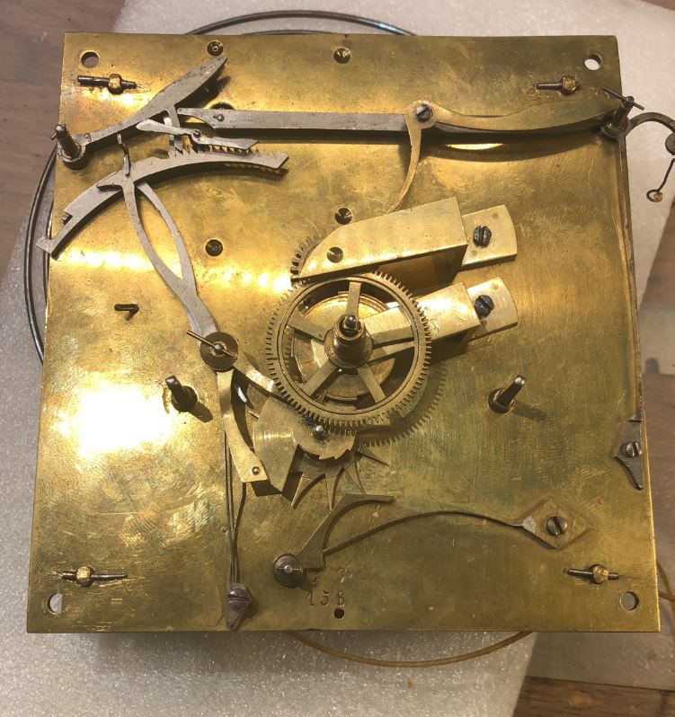 PM1122 1786 #1089 Napisano 15 Listopada 2018 No żebyśmy za daleko nie odeszli od tematu głównego Zacząłem pracę nad bardzo ciekawym zegarem z okresu Alt Deutsch. Zegar jest kwadransowy. Dwie spirale obsługuje jeden młotek na uchylnej osi, dwa grzebienie na jednej osi. Dwie wagi po 2,5 kg, no i gabaryty samego mechanizmu wskazuje że chód może być dłuższy ... To taka mała zapowiedź chyba ciekawego wątku w tym temacie Na razie w kwestii uruchomienia i regulacji, ze względu na unikatowość tego mechanizmu i zbyt małe moje doświadczenie, muszę wesprzeć się pomocą mistrza ... Już mnie ciekawi !!!Czyżby , na przedniej płycie , cienkie sprężynki dociskające dźwigienki , były mosiężne ??? 0 Udostępnij tę odpowiedź Odnośnik do odpowiedzi Udostępnij na innych stronach