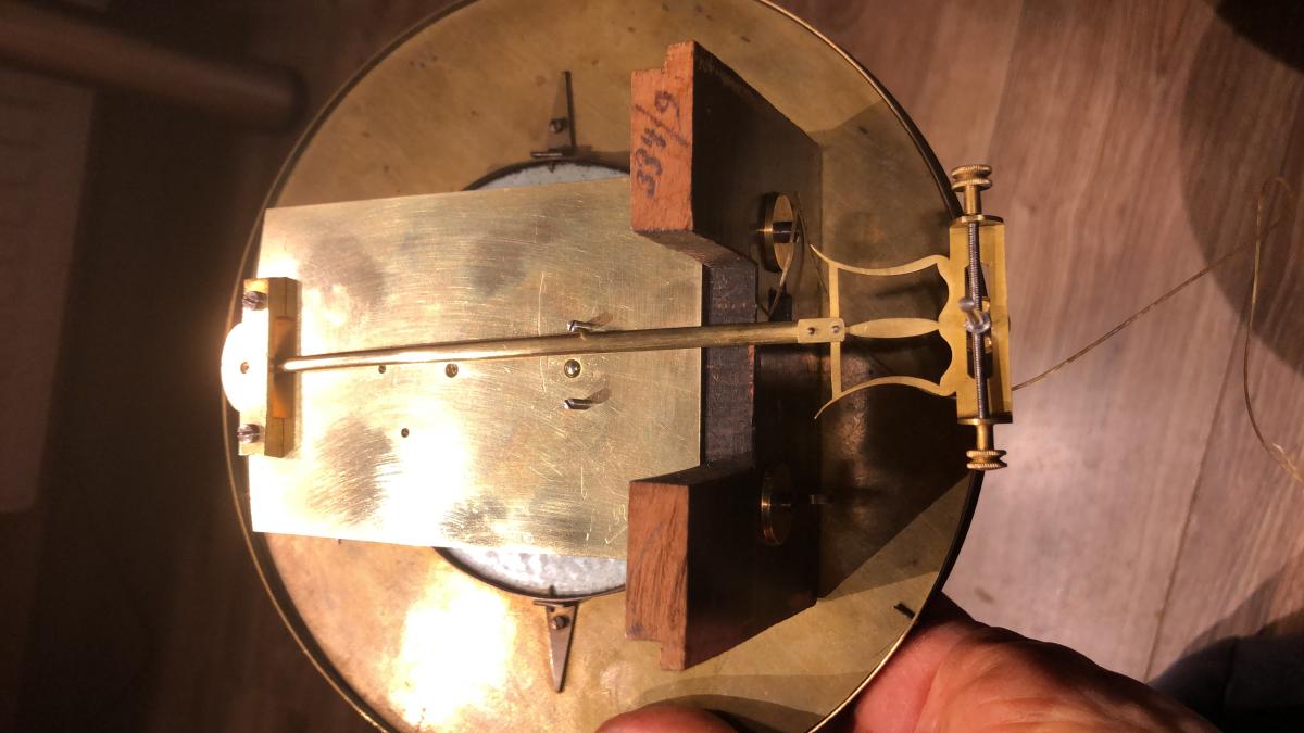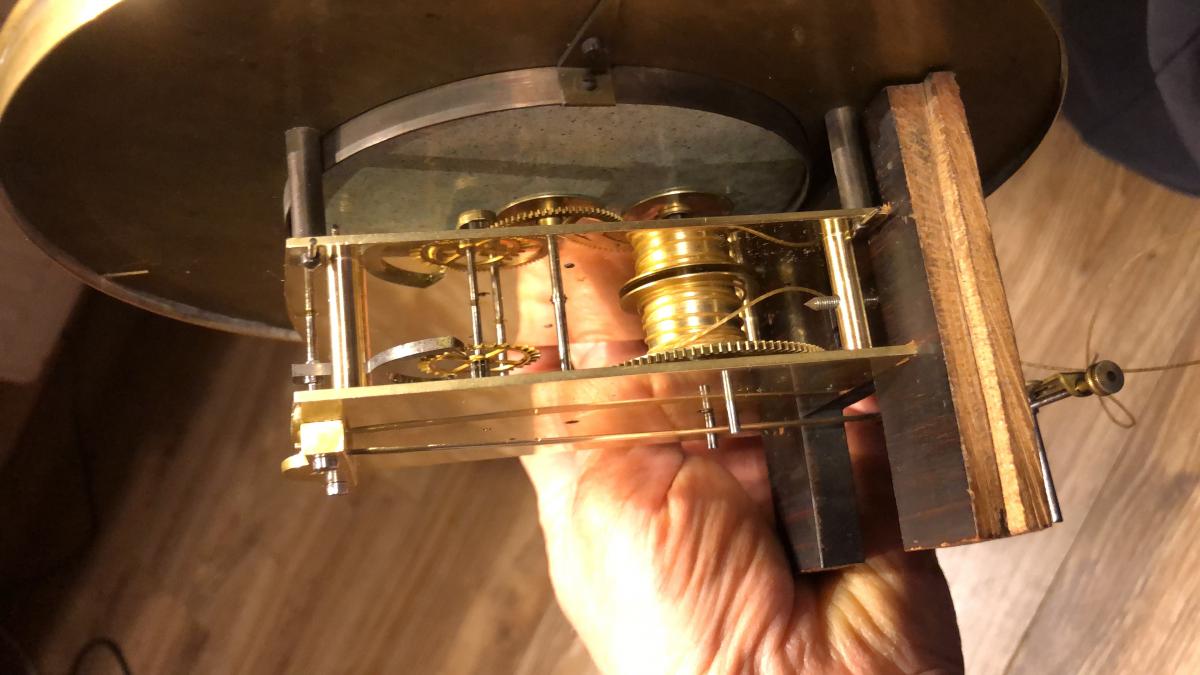 No i kolejny krok, testujemy zegar w skrzyni. Lekko kolebie wahadłem, chyba sprężynka do wymiany, albo coś z zawieszeniem w każdym bądź razie. Tak na razie trzyma czas  różnica, na godzinie na progu zauważalności. waga pierwotna dostarczona z zegarem 1350g. Tu pracuje "piknie" na 830 g. Już któryś raz zauważam że przy zakupie wagi są dziwnie ciężkie ... ostatni "wiedeń" pracuje na wadze 650g i to b. dokładnie. :ph34r: