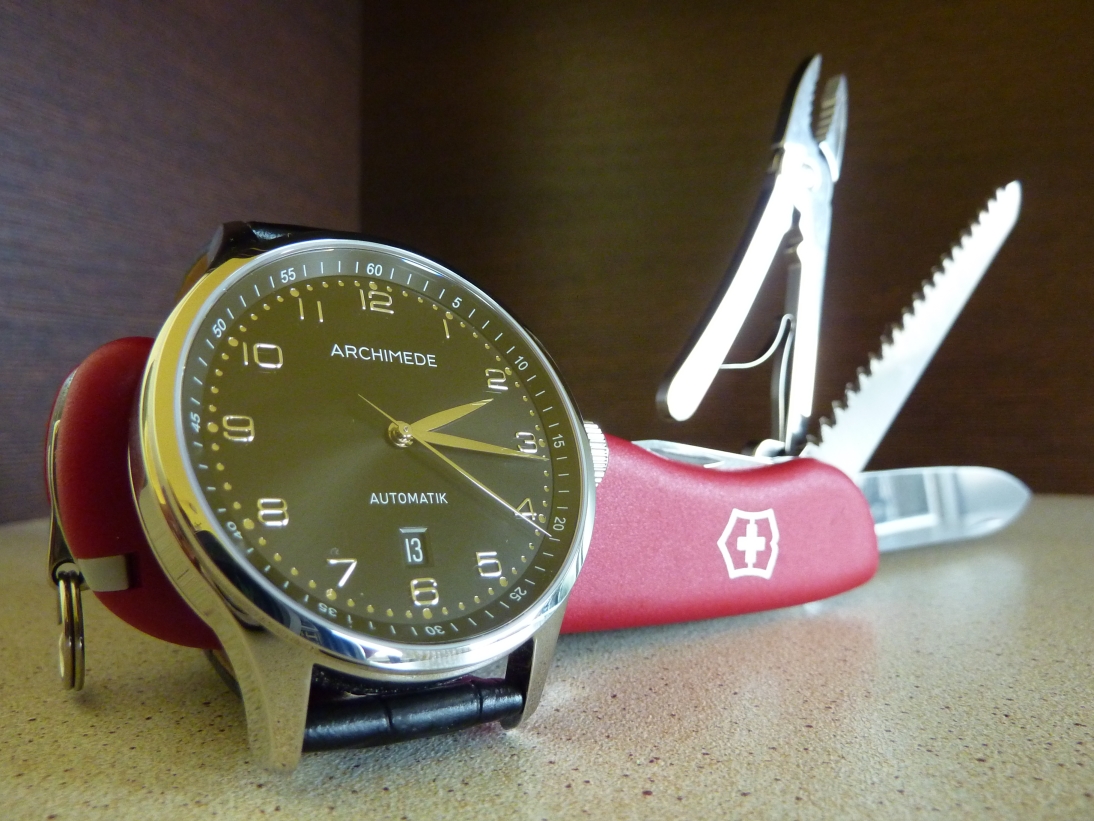 Nad napisem Archimede, przy 10 na tarczy minut chrono.