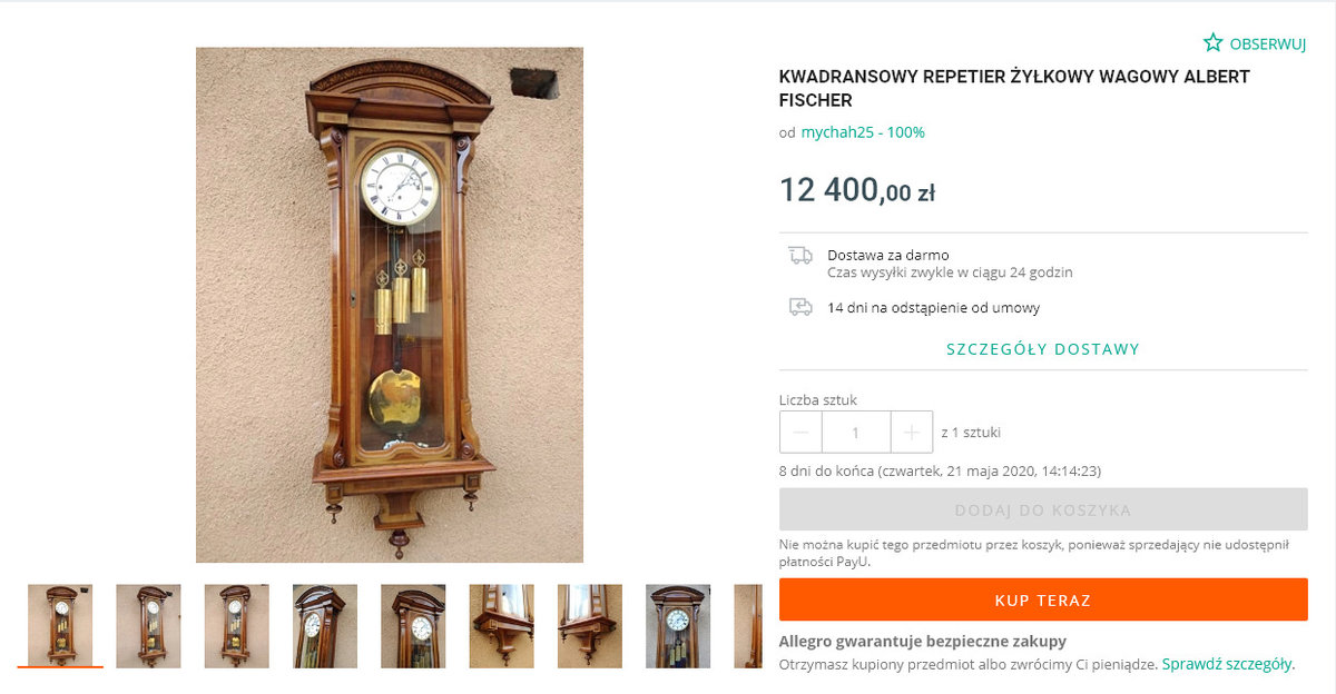 Do tego jeszcze sprzedający obszernie opisuje historię zegarów GB...