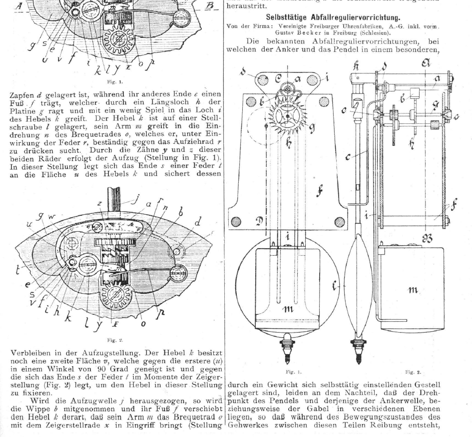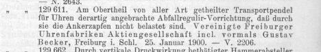 tarant 2972 #1103 Napisano 1 Września 2016 W przypadku zegarów GB, te lepsze miały numer seryjny, do maja roku 1925 doszło do około 2500000 we Freiburgu i 922000 w Broumovie.Potem do roku 1932 ponumerowano od zera około 5 tysięcy werków kwadransowych półgodzinnych i rocznych.Oznaczenia patentów na zegarach Beckera spotyka się dość rzadko, największą ich ilość nabito na półgodzinnych werkach z napędem wagowo - łańcuchowym. Był to patent dotyczący cichego mechanizmu bicia, DRP nr 171659. Link do rozbieranych zdjęć autorstwa naszego forumowego kolegi, amroziukahttps://get.google.com/albumarchive/109500165964876863196/album/AF1QipNHdPVkklwkkQrBsvOpp-QSyti3Z8eZhQD7Vnab DE000000171659A_all_pages.pdf 0 Pozdrawiam Piotr Tolerancja musi być nietolerancyjna wobec nietolerancji. Němec z Královce Udostępnij tę odpowiedź Odnośnik do odpowiedzi Udostępnij na innych stronach
