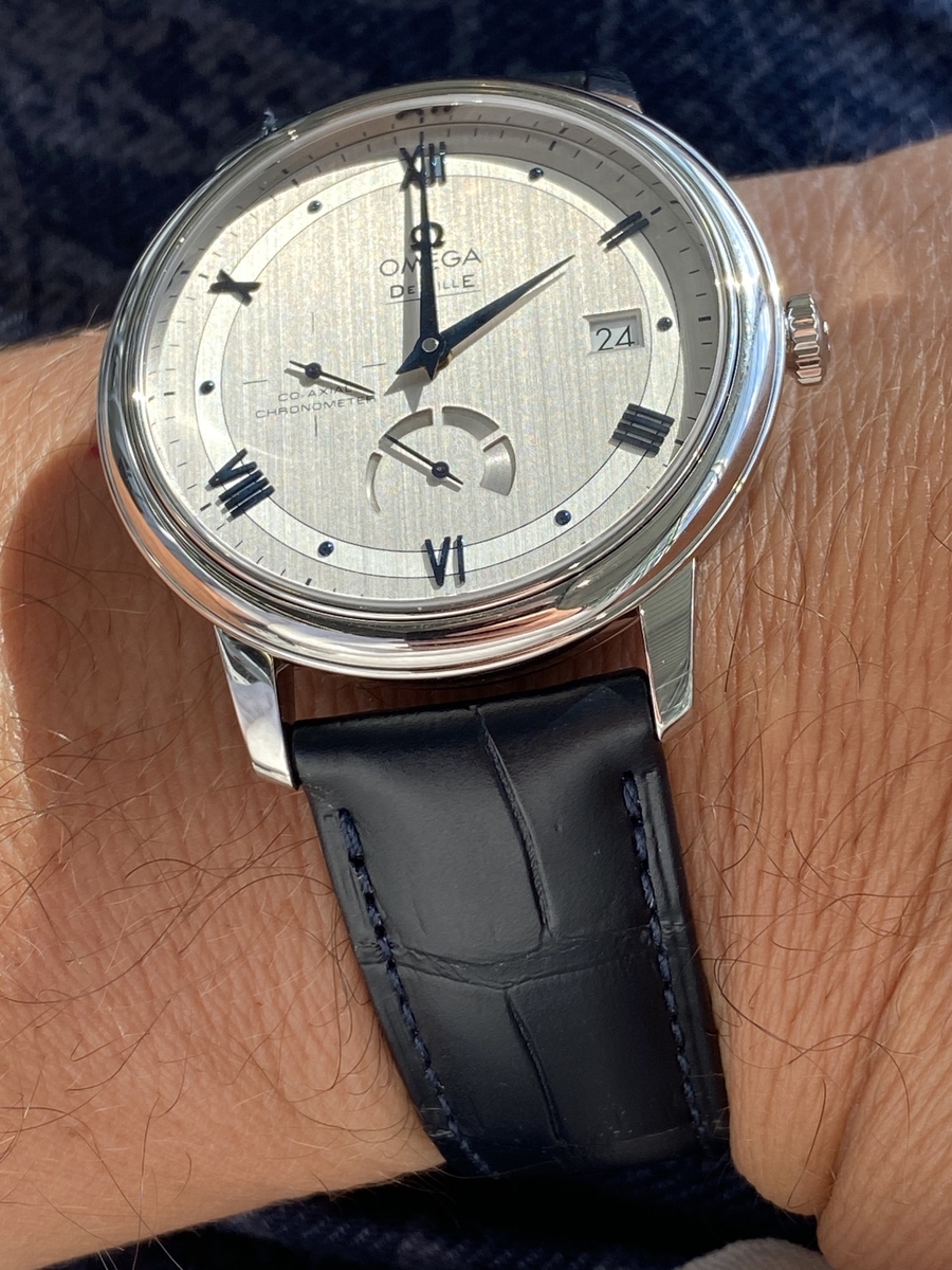 Wrzucam jeszcze na świeżo zrobiony "wristroll". Jedyna rzecz, która mi w tym zegarku nie odpowiadała to standardowe zapięcie, które wczoraj od razu po zakupie podmieniłem w butiku na praktycznie identyczny granatowy pasek od Globemastera + omegowe zapięcie motylkowe. Teraz jest perfekt!