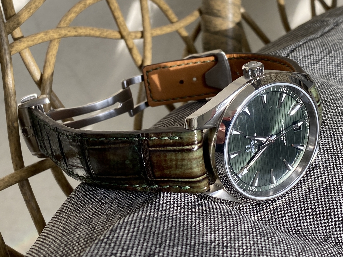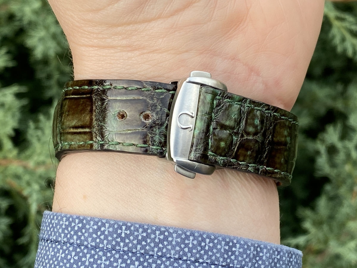 Na pierwszym zdjęciu dobór koloru paska wyszedł tak se. Na ostatnim natomiast jest ok. Myślę, a raczej wiem, bo mierzyłem ten zegarek, że to kwestia odpowiedniego ustawienia tarczy względem światła - ona jest niczym kameleon.