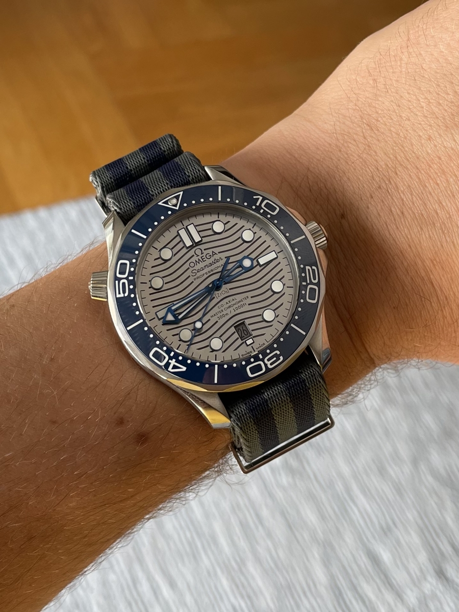 Nosze swoją 300 na podobnym, ale zrobiłem z niego single passa. Po prostu odciąłem, tą krótka cześć, która idzie pod zegarek. Mam szczupły nadgarstek i przy normalnej konfiguracji, wydawał się za wysoko.