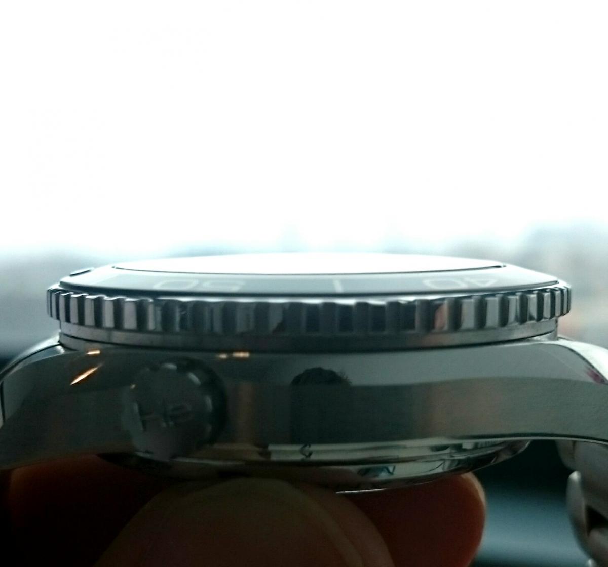 Widać , że przy szkle tez nie jest równo. Poza tym pomniejszyłem zdjęcie do wymiarów 1:1 zegarka i porównałem co prawda z wersją 45,5 i wydaje mi się, że cała wkładka za wysoko wystaje.