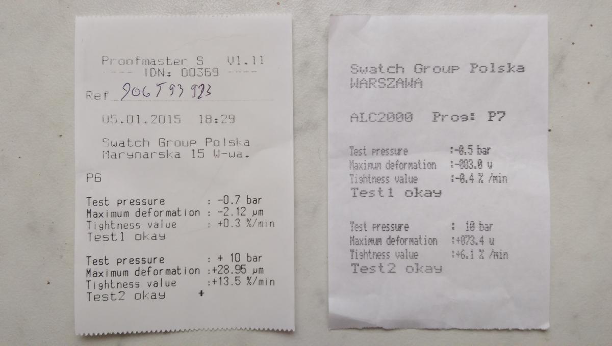 Dwie z moich Omeg odwiedziły serwis centralny, w tym jedna ( Planet Ocean ) na kompletny przegląd. Do obu załączono wydruki z testu szczelności, oba maksymalnie przy 10bar, żaden nie miał testu na 30 ani tym bardziej na 60. Coś z tego wynika?