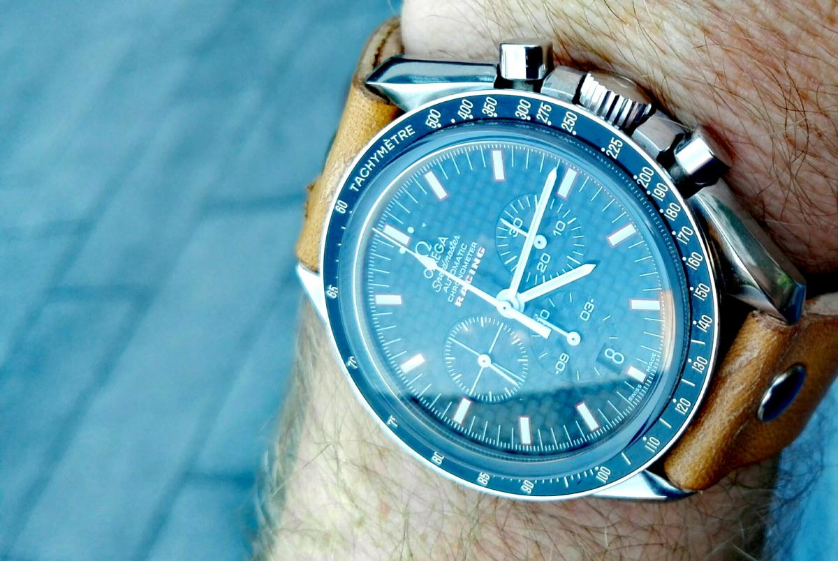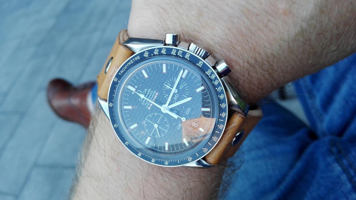 A taki miodowy pilot z połączenia miękkiej skóry juchtowej z jakimś lepszym licem. Speedmaster w każdym pasku fajnie wygląda.