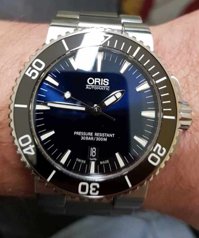 Wybierałem pomiędzy ORISEM Aquis Date, DOXA Shark XL a TAG HEUER Aquaracer. DOXA wersja limitowana, najtańsza w zestawieniu ale dobrze wykonana. Podobała mi się. Jak dla mnie najsłabszym jej elementem była lupka z datą. TAG HEUER był piękny, choć taki jakiś "jakby standardowy, powszedni" i taki "grzeczny, poukładany" jakby dla bogatych chłopców na Komunię (bez obrazy). Jak przymierzyłem ORISA od razu wiedziałem, że to jest to. Solidny, ciężki i nietuzinkowy zegarek. W domu na spokojnie okazał się jeszcze piękniejszy niż w sklepie. Gwarancja już przedłużona na trzeci rok.