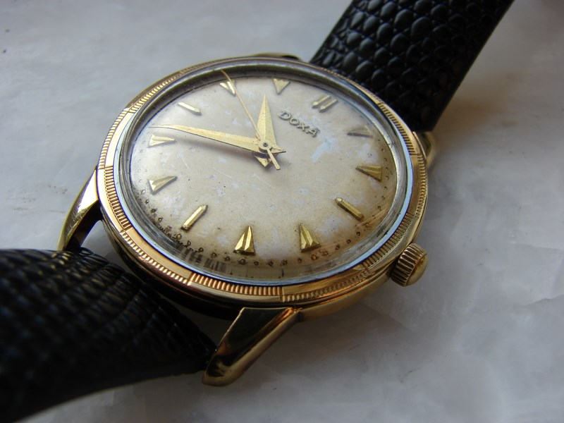 Walter_87 6346 #3767 Napisano 9 Listopada 2013 Urzekła mnie jej koperta a w szczególności luneta. Musiałem ją mieć Przyjmując tezę, że dwie pierwsze cyfry numeru oznaczają datę produkcji, zegarek pochodzi z 1956 roku. W środku Eta 1147 delikatnie zmodyfikowana przez Doxę.Niestety na tarczy widać upływ czasu, jednakże w niektórych miejscach spod brudu i patyny wygląda pierwotny kolor cyferblatu. Dlatego też chciałbym zafundować mu czyszczenie. Po otwarciu zegarka doszedłem do wniosku, że sam nie wykonam tego zabiegu - poza tym nie mam przyrządu do zdejmowania wskazówek... Muszę poszukać kogoś, kto podejmie się tego zadania P.S. Muszę jeszcze poszukać ładnego paska 19mm, co jest dosyć kłopotliwe. 0 KMZiZ Udostępnij tę odpowiedź Odnośnik do odpowiedzi Udostępnij na innych stronach