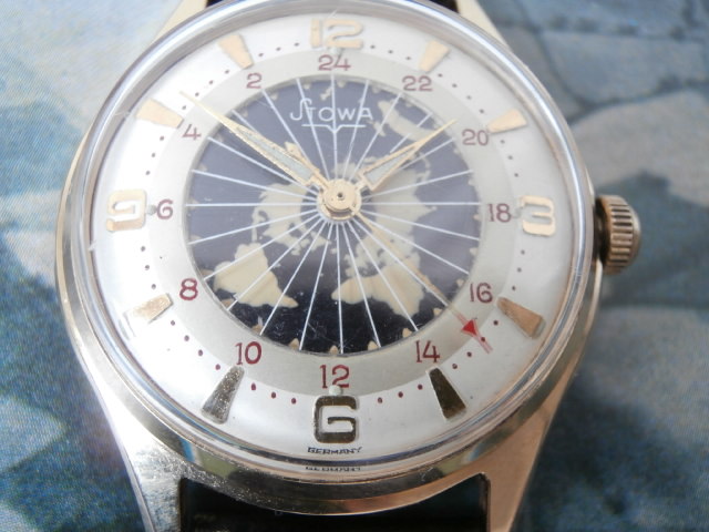mayor 225 #5617 Napisano 8 Lipca 2014 Ciekawa ta Stowa. I, rzeczywiście, podobieństwa z Kirowskim Sputnikiem się wprost narzucają. (zdjęcie kolegi z forum) Nawet typografia i wskazówki podobne......tylko Sojuz nie jest pacnięty na czerwono. pozdrawiamNarfasNie podejrzewam Waltera Storza o plagiat,,,,Zegarek niemiecki powstał wcześniej od kirowskiego Sputnika ,dodatkowo Stowa jest bardziej skomplikowanym zegarkiem..Sputnik to zwykły zegarek z propagandowym przekazem na tarczy,,Tarcza Stowy składa się z trzech części-bezela z podwójnymi indeksami 12 i 24 H,,,nieruchomej przezroczystej subtarczy z logo i podziałką stref czasowych oraz emaliowanej subtarczy z mapa świata ,która porusza się w kierunku przeciwnym do wskazówek zegarka -jeden obrót na 24 godziny..Dzięki temu Stowa ma funkcje "World Time" 0 Udostępnij tę odpowiedź Odnośnik do odpowiedzi Udostępnij na innych stronach