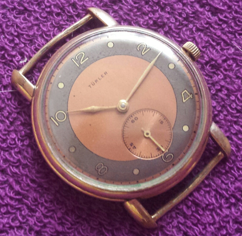 dacik 3 #9346 Napisano 27 Grudnia 2015 A ja, standardowo. Aby oczy odpoczely od Waszych Zenitow, Longinow i innych wyzszych lotow marek. Wyczyszczony i naoliwiony podczas rodzinnego obiadu w drugi dzien swiat;)Fajna kolorystyka -tarcza miedziano pomaranczowa z ciemnoszarym ringiem. Indekcy godzinowe zlotego koloru.Marka Turler (istniejacy do dzisiak zaklad jubilersko-zegarmistrzowski).Na dekielku, obok numery seryjnego, wydrapany rok 1946. W srodku Peseux 170. 0 Udostępnij tę odpowiedź Odnośnik do odpowiedzi Udostępnij na innych stronach