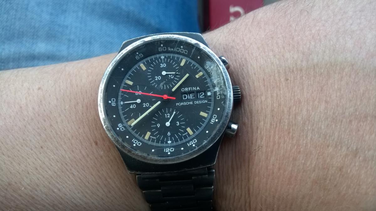 Orfina Porsche Design - niestety szkło zmasakrowane ale to nie problem za to tarcza idealna - koperta oksydowana ale z równomiernymi przetarciami - dzieje się na tarczy sporo, fajny podoba mi się