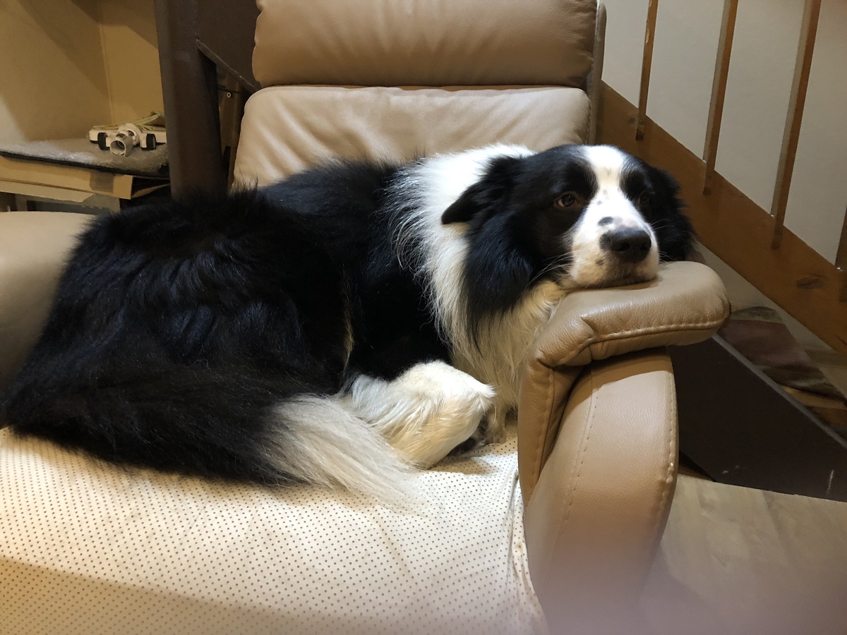 Barrett odpoczywa po wieczornym spacerku  i spotkaniu z dzikami :)