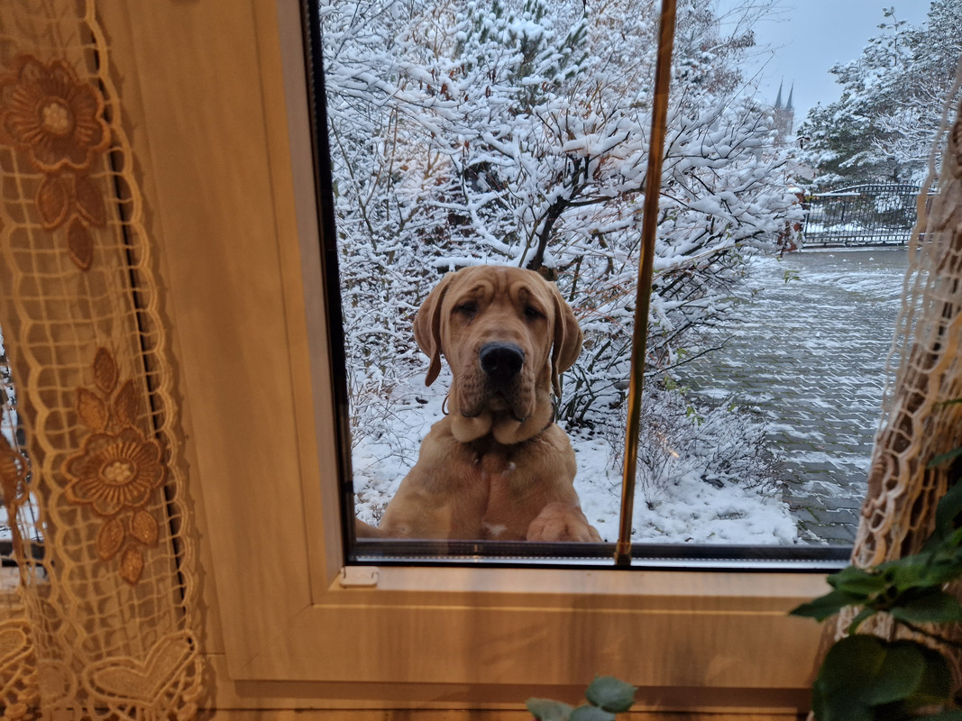 Na szczęście spadł śnieg więc Albi może się kulać do woli To zdjęcie zrobiła nasza groomerka i udało się jej to dopiero po pokazaniu mu pudełka smaczków