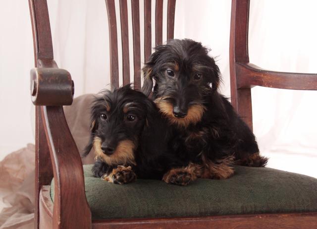 :D No fotka jest już wiekowa, obecnie sa już duże (maja po trzy lata). Torin (to ten z lewej) wdał sie w ojca i jest prawie jak króliczy, natomiast Yarpen to kawal psa (jak na miniature jamnika :)).