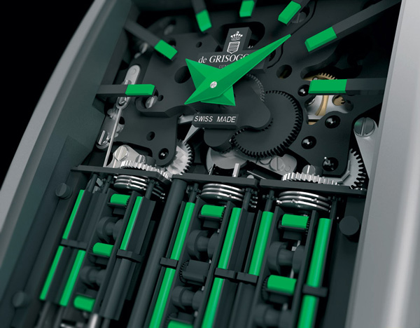 Model Meccanico dG był pierwotnie zaprezentowany na 15 lecie firmy de Grisogono w 2008 roku. Opisany pokrótce w Chronosie 1-2008.