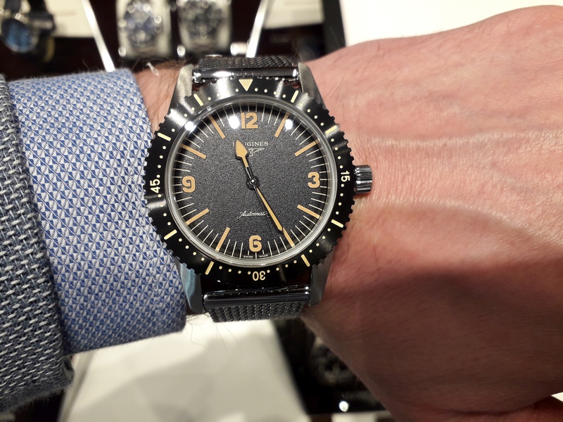 Ja tymczasem przymierzyłem Skin Divera. Podchodziłem do niego dość sceptycznie po zdjęciach z internetu. Na żywo wypada lepiej - jednak fajna jest ta tarcza, a i kolor lumy nie wydał mi się wcale kiczowaty. Nurkowy dekiel jest bardzo efektowny. Przymierzyłem wersję na solidnym, grubym meshu z wygodnym zapięciem - duży plus. Na plus również brak daty. Trochę pusto bez osłony koronki, ale tak było w pierwowzorze. Dysonans powoduje trochę bezel - może to tylko pierwsze wrażenie, ale nie pasował mi do reszty, jakby został przełożony z innego modelu. Za to ładnie się obraca. No i niestety jednak - 42 mm oraz długie uszy to dla mnie zbyt dużo: