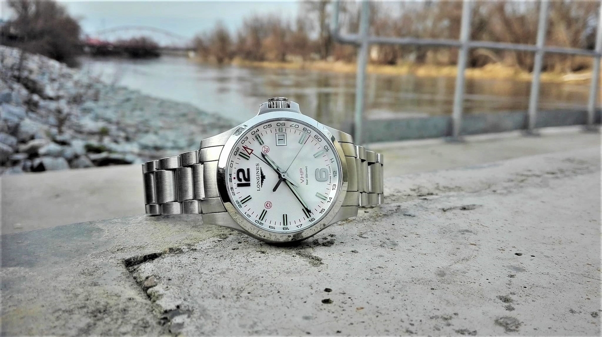 To 39mm, a zdjęcie trochę zniekształca - w rzeczywistości wydawał się odrobinę mniejszy, a przez to chyba wręcz idealnie dopasowany do mojego szczupłego nadgarstka. Kolor tarczy, jak już wiemy, jest fantastyczny i świetnie współgra z bezelem - odcienie i faktury są różne, przez to elementy te nie zlewają się w jeden duży niebieski obszar. Trzeba przyznać, że całość mocno się błyszczy, ale jest kapitalnym produktem Longinesa.