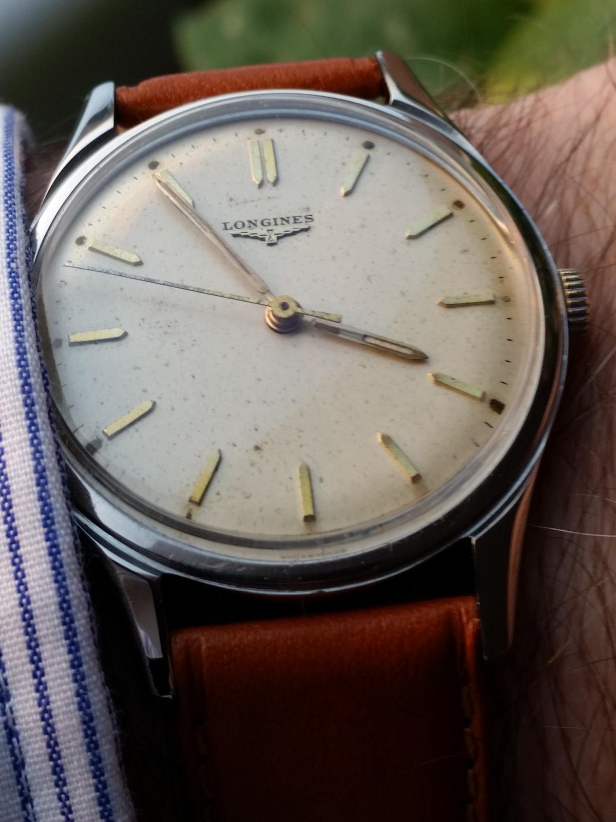 Mój pierwszy Longines, vintage na werku 23zs. Co sądzicie? Wskazówki nadają się do renowacji? Tarczy bym chyba jeszcze nie ruszał. Nie mam też zbyt wielu informacji o mechanizmie oprócz tego, że jest po przeglądzie, czyszczeniu i smarowaniu w porządnym zakładzie zegarmistrzowskim. Pozdrawiam. Bartek
