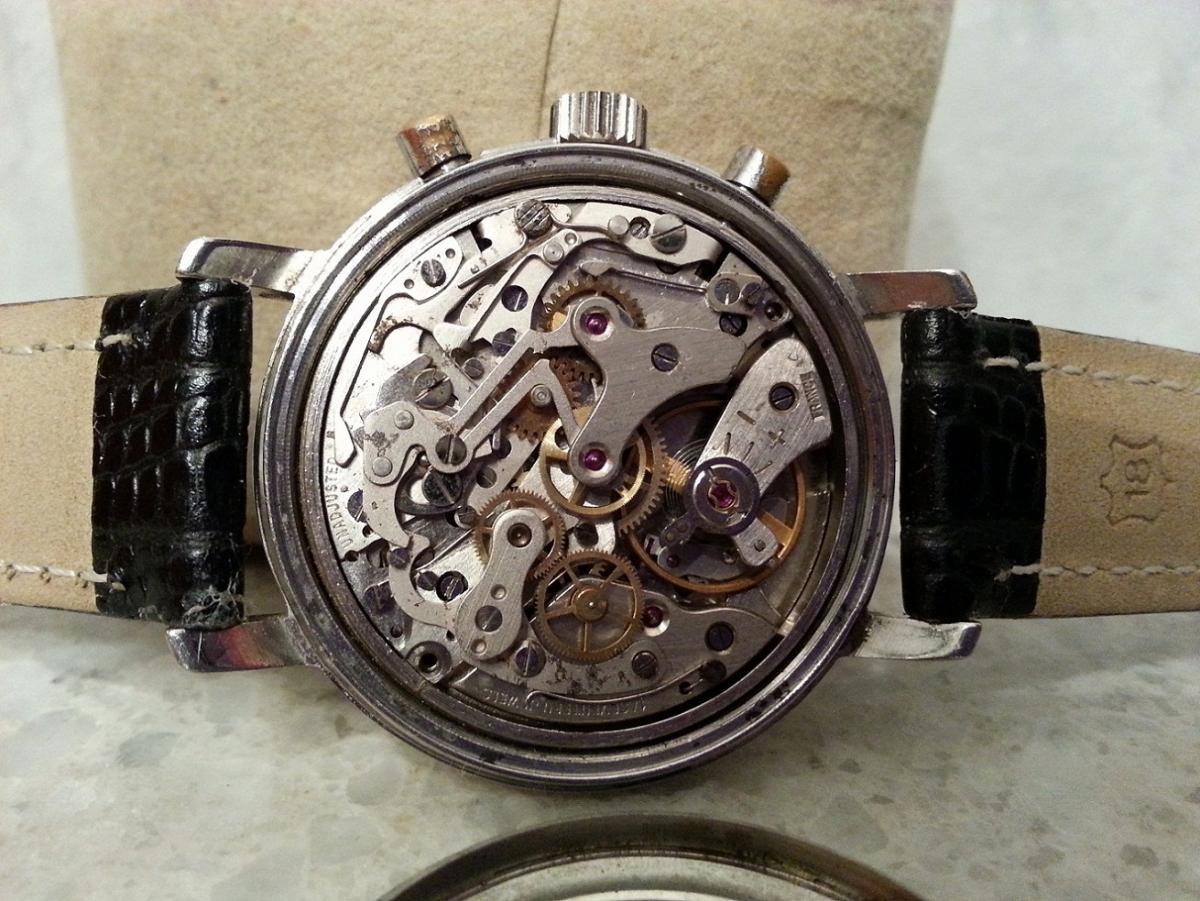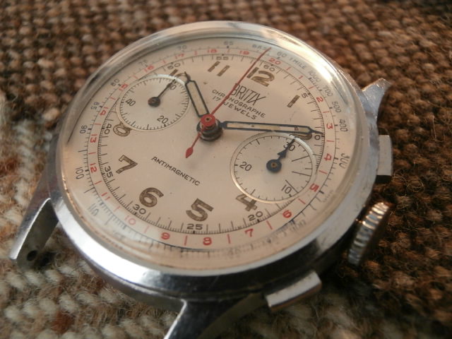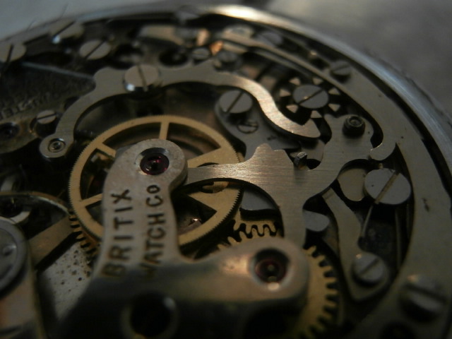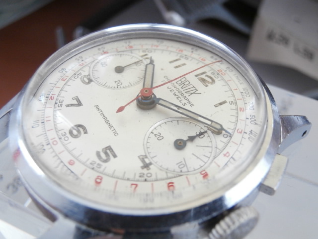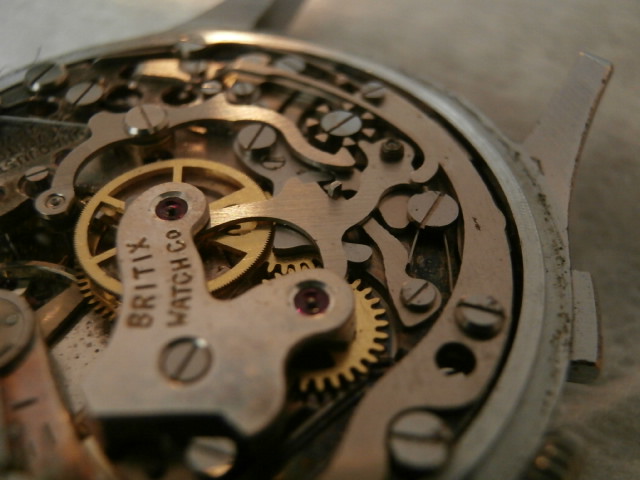 mayor 225 #610 Napisano 7 Października 2014 Dzisiejsze nabytki ..Poljot 3133 i Britix z początku lat 50..Poljot w średniej kondycji jedyny plus to wczesna produkcja i logo w cyrylicy ;;Za to Britix w doskonałym stanie z ciekawym mechanizmem Valjoux 92..Mechanizm ten był produkowany w latach 1950-1966 i powstał na bazie Valjoux 77,,W mechanizmie tym jest wykorzystany patent Eda Heuera z 1886 roku "swivel pinion"-(oscylująca zębatka),który redukuje ilość kol zębatych i znacznie obniża koszty produkcji chronografu.. (element jest zaznaczony strzałką na zdjęciu)., 0 Udostępnij tę odpowiedź Odnośnik do odpowiedzi Udostępnij na innych stronach