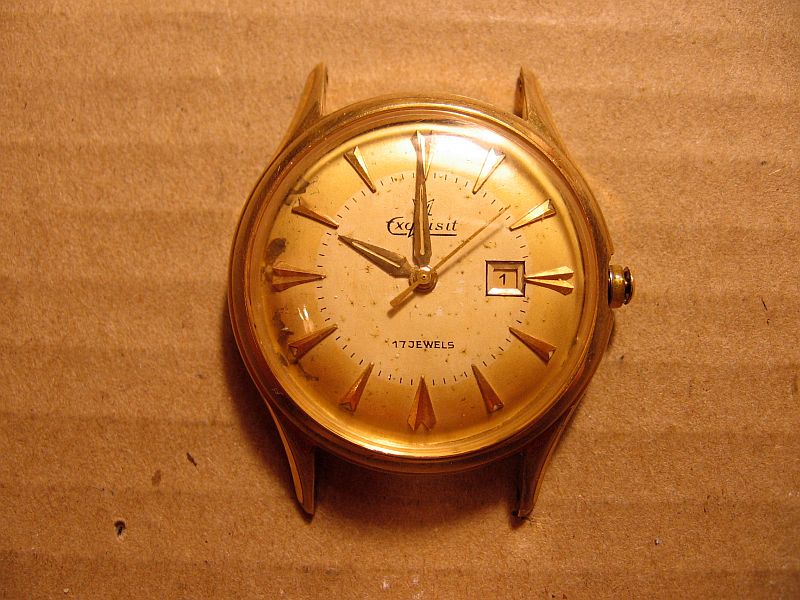 kaer 2 #1 Napisano 26 Stycznia 2011 Przed świętami trafił do mnie zegarek nie znanej mi wcześniej marki Exquisit, zegarek należał do śp dziadka mojego kolegi. W sumie to zaczęło się od tego, że miałem mu tylko poszukać czegoś na jego temat, a skończyło się na pełnym serwisie Udało mi się znaleźć tyle, że Exquisit to marka Hugo Weinmanna z Pforzheim. Istniała do lat 1970, po tej dacie przejęła go marka Pallas Deutsche Uhrencooperation. Wydaje mi się, że ten model pochodzi z lat 1950. Sam werk to 17 kamieniowy PUW 60 stanowiący prawdopodobnie kopię ETA 2390 albo FHF 67. Zaczynamy od tyłu i próbujemy ogarnąć stan zabrudzenia :shock: Najostrzejsze zdjęcie z mojej kolekcji: Tarcza, niestety tu nie dużo dało się zrobić Werk PUW 60 0 Udostępnij tę odpowiedź Odnośnik do odpowiedzi Udostępnij na innych stronach