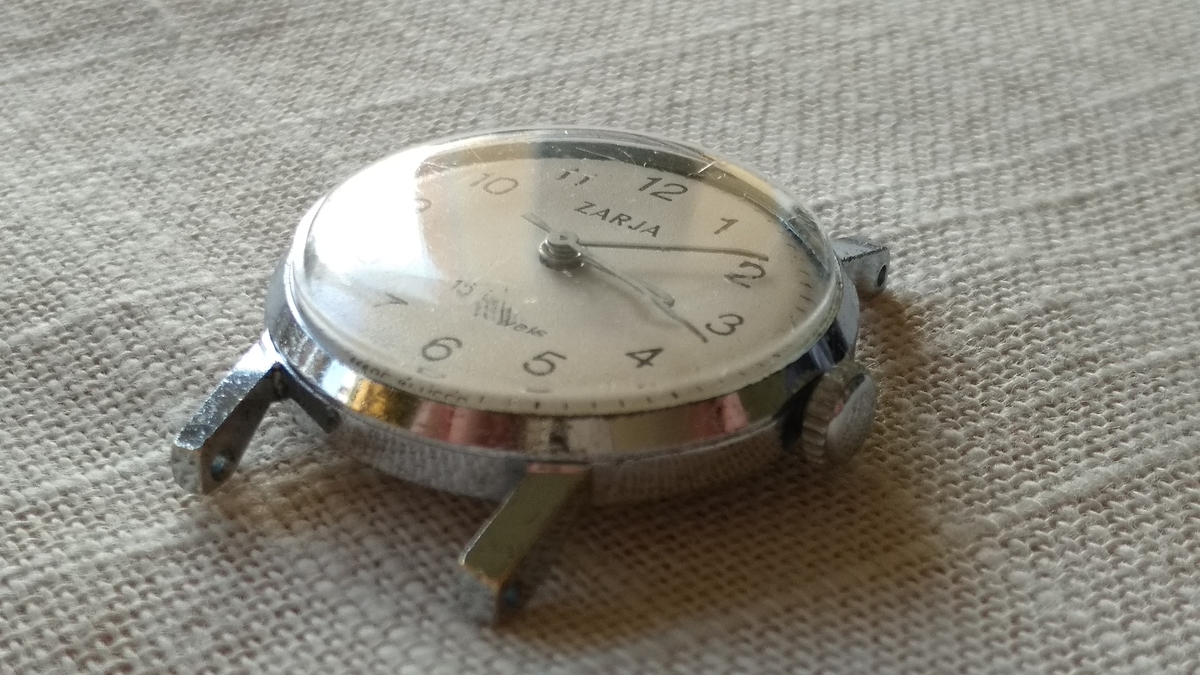 Przed i po, na chińskim pasku. Z dwóch kiepskich złożyłem jedną. Szkło jest trzaśnięte i do wymiany, ale na zdjęciu tego nie widać. Prostota i ponadczasowe wzornictwo, dzięki któremu ten zegarek długo za mną chodził. Egzemplarz nieidealny, ale kto z nas idealny jest, niech pierwszy rzuci kamieniem.... Gdyby ktoś miał wałek i koronkę do takiej koperty na zbyciu, proszę o kontakt.