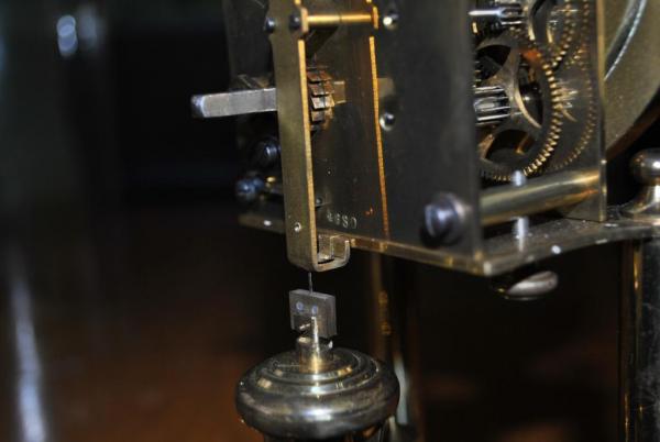 Masz prawdopodobnie jeszcze jeden problem w swoim zegarze, a mianowicie, zębnik na pierwszym kole pośrednim w przekładni napędu ma zerwany jeden ząb. Obejrzy go dokładnie, jeżeli rzeczywiście brakuje tego zęba, to trzeba wymienić zębnik lub całe koło.