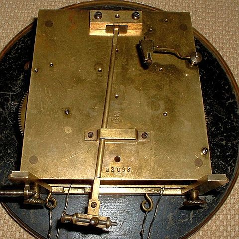 Oznaczenie długości wahadła (tutaj P 64.) pojawiło się na mechanizmach z Freiburga dopiero na przełomie XIX i XX wieku. Zapewne z tego okresu pochodzi ten mechanizm.