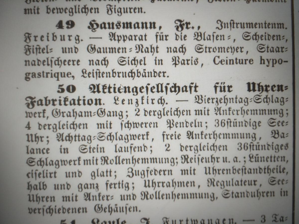janekp 516 #89 Napisano 29 Stycznia 2018 Moze Lenzkirch do nr 140 000 kupowal surowe werki z Francji,pozniej pierwsza sygnatura od 185 000 i to sa ich wyroby czyli od 1875 roku;Pomijam fakt ze tytulowa centralna sekunda to raczej bazowal na francuskim werku IMO.W katalogu z 1857 roku same nazwy francuskie wyrobow,troche z visible escapment ,brazy itd. 0 Znane są tysiące sposobów zabijania czasu,ale nikt nie wie, jak go wskrzesić. Udostępnij tę odpowiedź Odnośnik do odpowiedzi Udostępnij na innych stronach