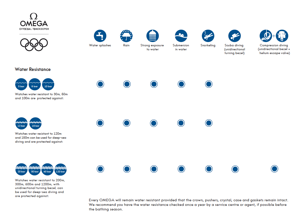 "We recommend you have the water resistance checked once a year by a service centre or agent, if possible before