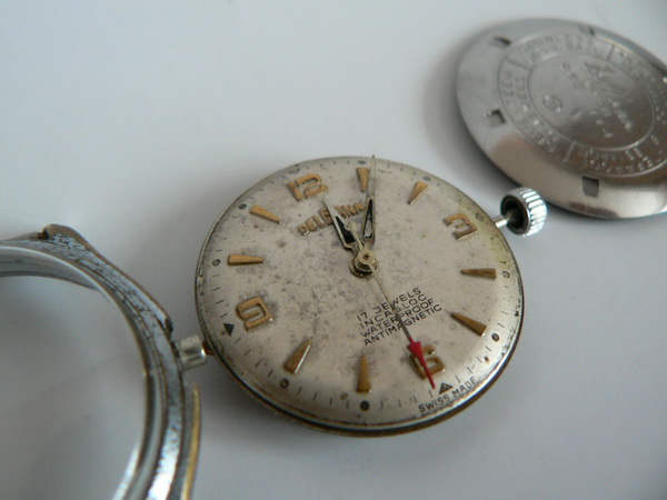 Przyszło toto jakieś takie usmarowane dookoła szkła. Na szczęście oś sekundnika jest cała. Nie byłem tego pewien przed zakupem.