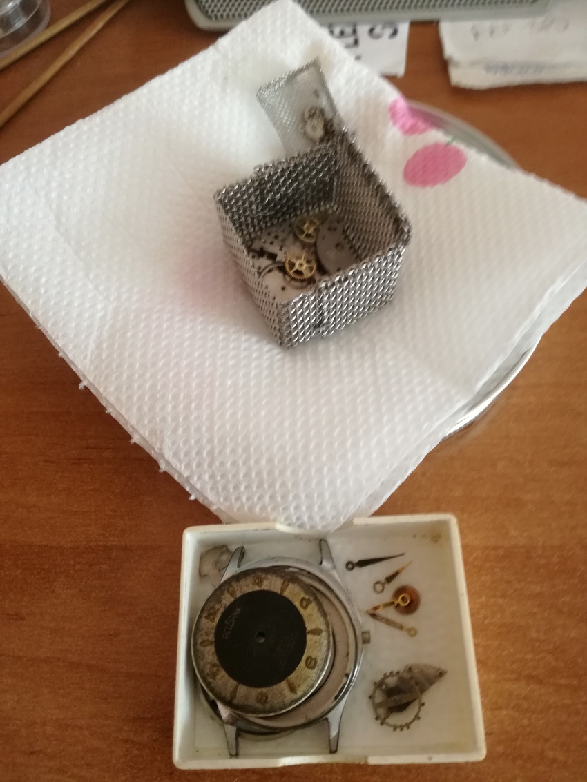 Znalazłem w szufladzie Delbanę, która kupiłem kilka miesięcy temu i nie było czasu na SPA. Tak wygląda teraz. Muszę wyczyścić tarczę, wskazówki są do wyczyszczenia i nałożenia nowej lumy, a z mechanizmu kapie oliwą, albo ktoś nalał jakiś inny smar.