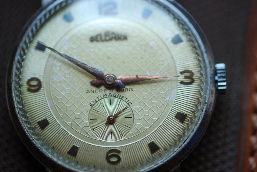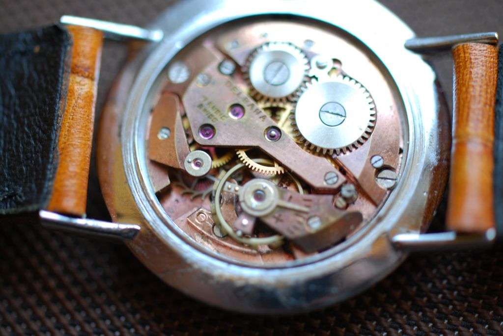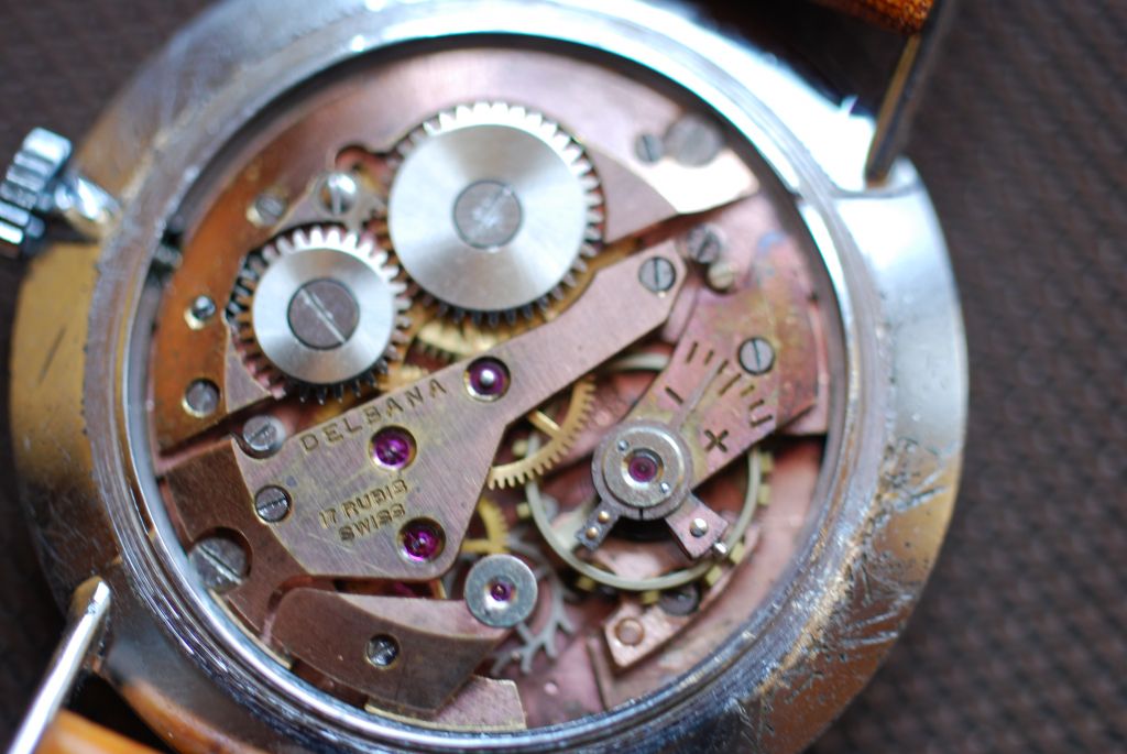 Chciałem przedstawić Delbanę na werku AS 1123/1124 . Średnica 35 mm, z koronką 37 mm. . Numery na werku są dwa , ale na tej samej płytce będzie to widać na zdjęciu.( 6 zdjęcie ) Po za tym na szkiełku jest wytłoczony fajny ring , który mu dodaje sznytu . Zegarmistrz który go oglądał powiedział że śrubki mocujące części werku są odwrotnie umocowane  niż w innych młodszych delbanach co Go bardzo zaciekawiło , Mówił że tak były mocowane w starych delbanach.