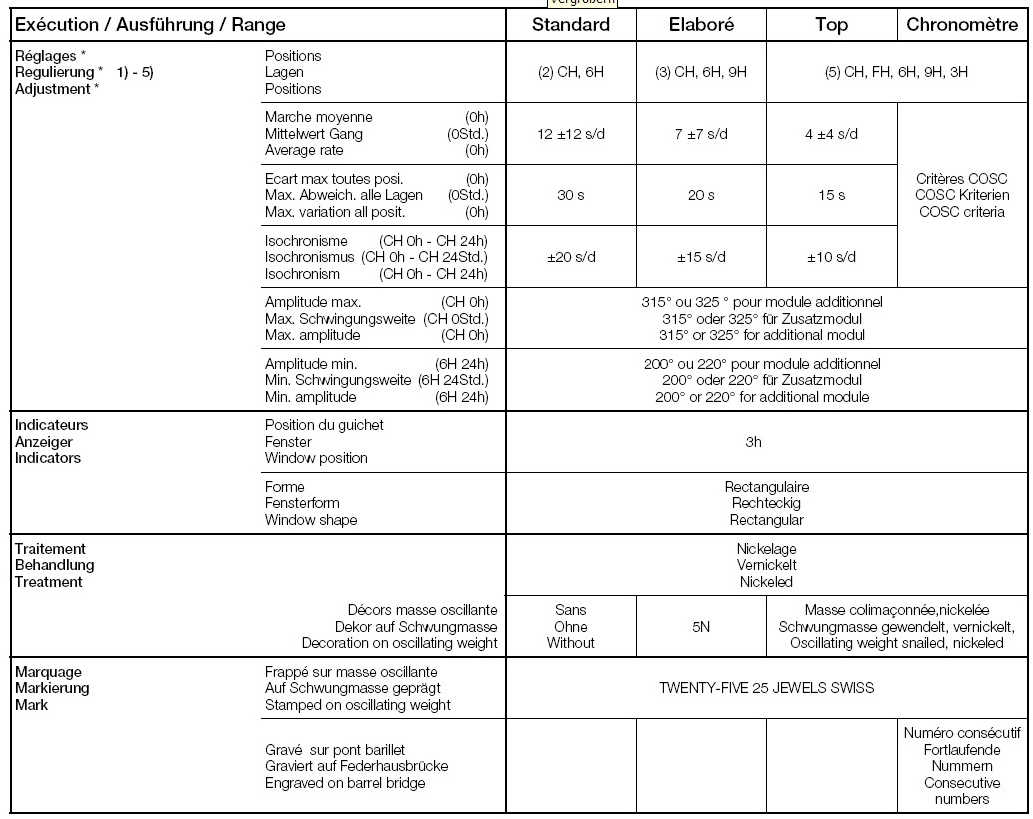 ETA - Standard, Elabore, Top, Chronometre - różnice