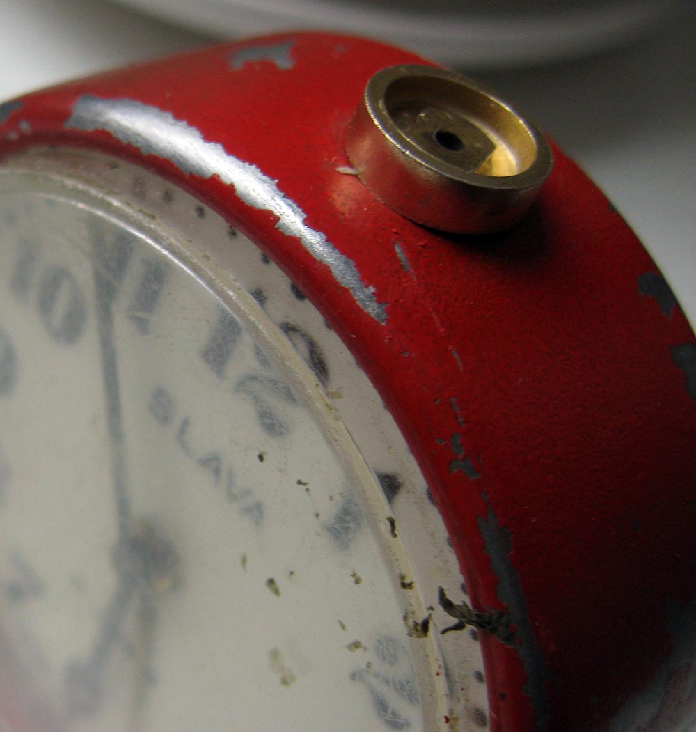 Moim zdaniem (co zazwyczaj staram się zaznaczać) taką sfazowana osłonę wyłącznika budzenia stosowano w budzikach SLAVA posiadających tarcze z indeksami cyfrowymi na 3, 6, 9 i 12 godzinie.