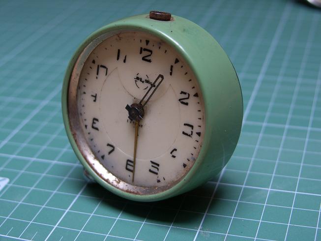 Ten zielony to budzik z Erewańskiej Fabryki Zegarków - da się jeszcze zauważyć resztki znaku ECzZ. Składali je z mechanizmem 5671 - moim zdaniem lata 60-te. Były też te modele nieco inną tarczą - czcionka indeksów godzinowych miała podobny ale nieco inny kształt.