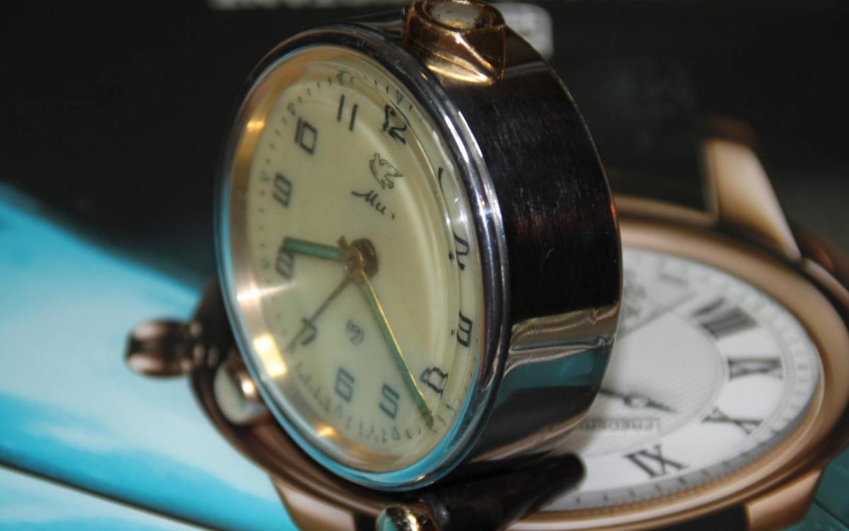 Wrzucę fotki budzika z wczoraj, o ile tarcza i mechanizm jest mi znana, to takiej obudowy jeszcze nie widziałem. Zarówno przednia część jak i tył są inne niz normalnie do takiego mechanizmu. Dla porównania wstawiłem fotkę obok Mira w klasycznej "budzie". Będę wdzięczny za pomoc przy ustleniu, czy to składak, czy takie coś było produkowane.