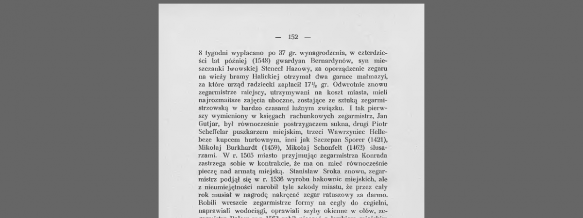 W latach pięćdziesiątych XIX wieku we Lwowie można wymienić jeszcze takich zegarmistrzów jak : Ksawerego Grabińskiego, Franciszka i Dominika Englów, Bauera, Majewskiego, Bartłomieja Siennickiego oraz dwóch Żydów, braci Kronik.