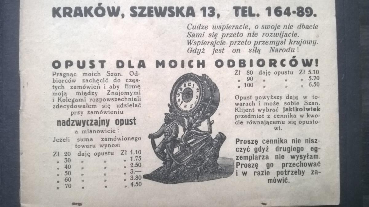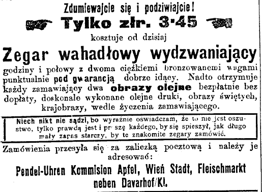 KL, 1895. To chyba jedno z najpiękniejszych ogłoszeń zegarowych jakie w życiu widziałem.