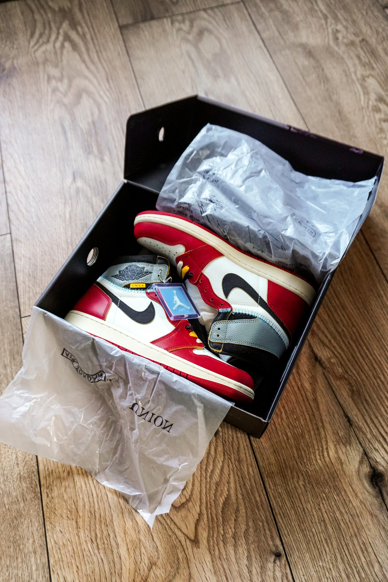 MasterMind 12679 #7120 Napisano Środa o 15:30 No to ja klasycznie, stały punkt programu, czyli kolejne AJ1. Air Jordan 1 Retro High OG SP Union LA Chicago Shadow - fajna kolaboracja, ciekawy koncept połączenia dwóch butów - czaiłem się na to od paru miesięcy i jako fan tej kolorystyki nie mogłem go sobie odpuścić. Wykonanie na bardzo dobrym poziomie, żadnych niedoróbek, dobra jakościowo skóra (jak na Air Jordany), brzegi barwione na żółto, do tego trzy rodzaje sznurówek, z czego dwa komplety są dwukolorowe (kremowo/czarne i czarno/szare) 3 Udostępnij tę odpowiedź Odnośnik do odpowiedzi Udostępnij na innych stronach