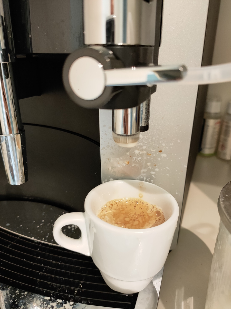 A przy okazji, Jura rzeczywiście potrafi narobić syfu mlekiem, ale wysoka szklanka/obniżenie wylewki rozwiązują ten problem. Podobnież, system spieniania mleka wymontowuję i czyszczę pod bieżącą wodą. Nie używam płynu Jury, chociaż początkowo miałem takie zapędy.