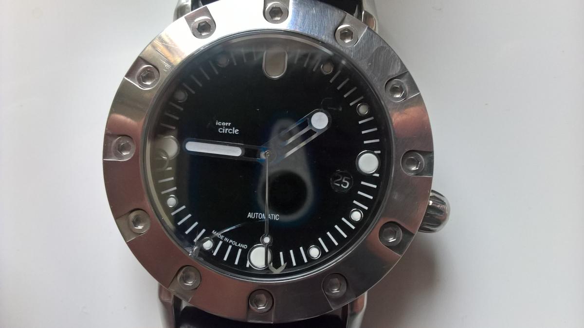 Ależ niezdara ze mnie. Muszę ze smutkiem powiedzieć, że mój Xicorrek uległ wypadkowi. Dostał takiego strzała, że szkiełko nie podołało a i z tarczy co nieco się sypnęło. Szczęśliwie na wzór terminatora dalej działa, pęknięcie szkła niewielkie, trzeba będzie odwiedzić zegarmistrza i puki co unikać wody. Ciekawo ile sobie zażyczy za identyczne szkiełko. Dodam, że chwilowo wróciłem do oryginalnego paska, co by nie mówić, jest ładny.