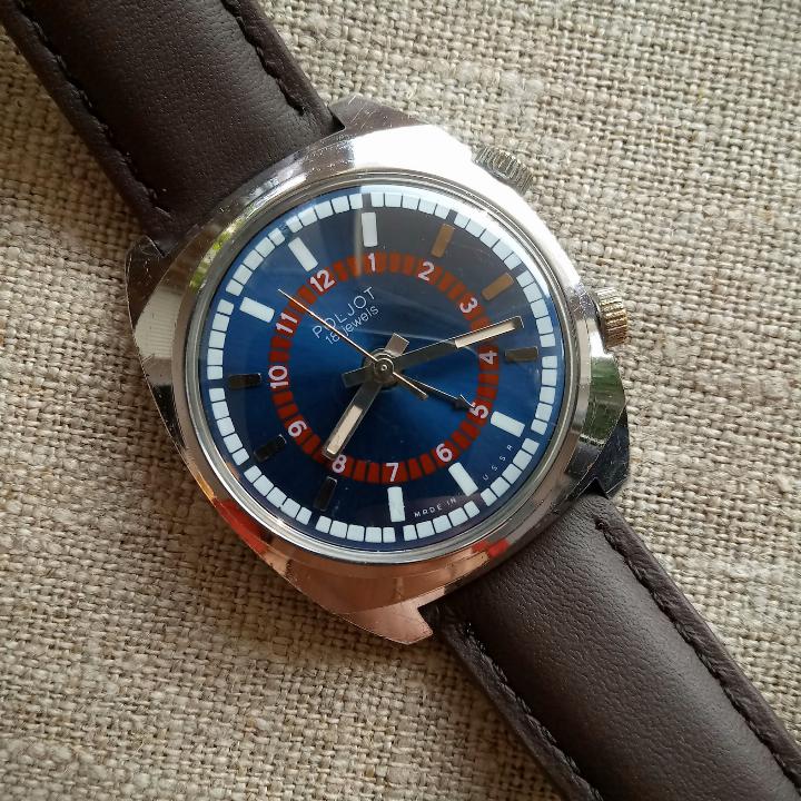 Rzadki eksportowy stalowy Poljot. Tarczę niestety ktoś już mył bo wkoło tarczy  i pod napisem Poljot widać żółtą patynę a środek ktoś skutecznie "wyczyścił".
